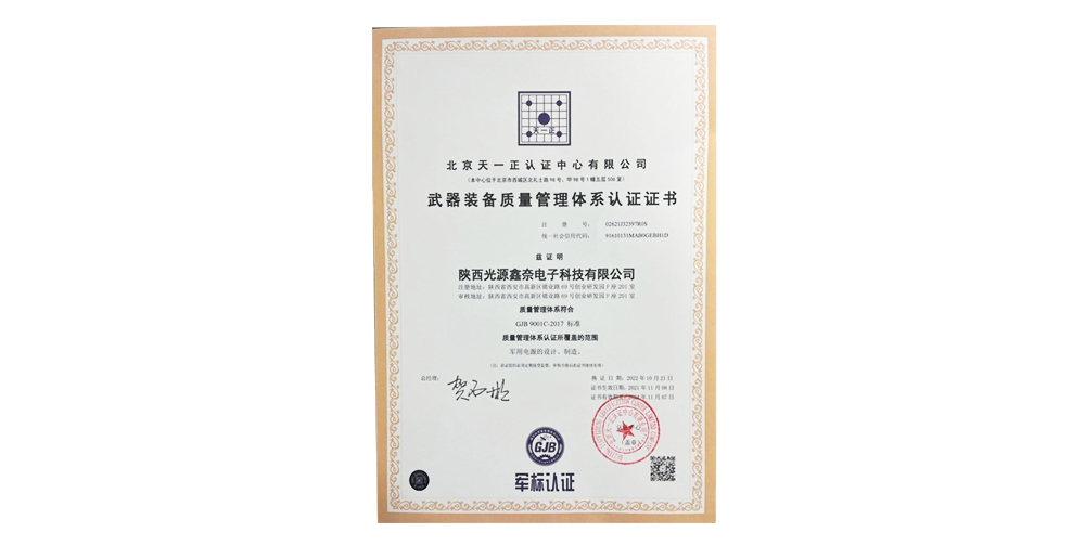 我们公司顺利通过了天一正认证中心的严格评估与审核,正式获得“武器装备质量管理体系认证证书”。这标志着公司质量管理水平的大幅提升。近年来,公司一直精益求精,锐意进取,通过优化产品结构、技术升级、系统完善等措施,不断提高质量管理标准和能力。经过认证机构的多轮评审,公司的质量管理体系得到了充分认可。今后公司将不断超越自己,努力打造时间最优秀的产品品牌。